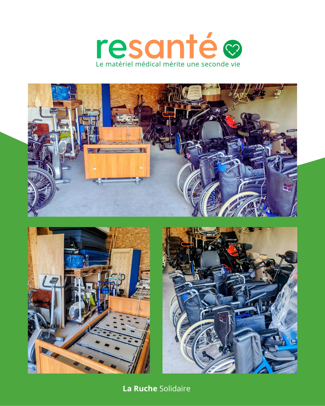 Dans l’attente d’un local plus approprié qui nous permettra de stocker plus et d’avoir un espace dédié à la remise en état, nous ouvrons une fois par semaine, notre dépôt pour notre projet ReSanté, la recyclerie de matériel médical, un espace entièrement dédié au réemploi, à la mise à disposition de matériel médical, d’aides techniques et au don de matériel divers pour faciliter le quotidien de chacun.